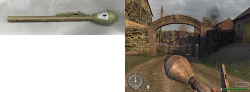 Panzerschrek | Le Panzerschrek, copie du bazooka Américain, c'est un arme anti-char réutilisable mais longue à recharger, et sa visée n'est pas des plus évidente. Première apparition dans l'armée: 1940