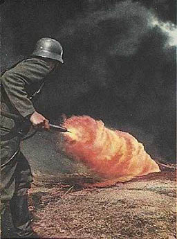Lance-flammes | | Le Lance-flammes, arme redoutable à courte portée mais très gourmande en carburant donc son autonomie est très faible. On ne le retrouve que dans la grande offensive. |  |