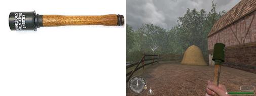 "Presse purée" | | La Stielhandgranate, fameuse grenade Allemande très caractéristique par leur manche ce qui leurs permet d'être lancée assez loin. |  |