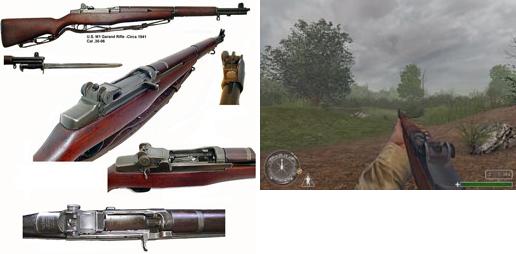 Garand M1 | Le Garand M1, fusil standard de l'Armée Américaine, c'est un fusil semi-automatique à 7 coups. Son rechargement est rapide mais il faut tiré toutes les balles pour l'effectuer. Il est puissant et précis mais son système visée masque un peu le champ de vision. Première apparition dans l'armée: 1936 |  |