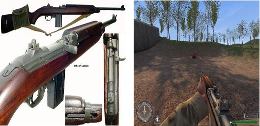 Carabine M1A1 | La carabine M1A1, carabine semi-automatique à dix coups, elle est utilisée par les parachutistes, sa croche est en fer et repliable se qui facilite sa maniabilité. Elle est précise mais pas très puissante mais néanmoins redoutable à moyenne portée. Première apparition dans l'armée: 1941