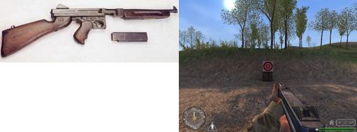 Thompson | La thompson, mitraillette à cadence de tie élevée et réglable, elle est très efficace a courte portée, mais imprécise sur de longue distance. Première apparition dans l'armée: 1938 |  |