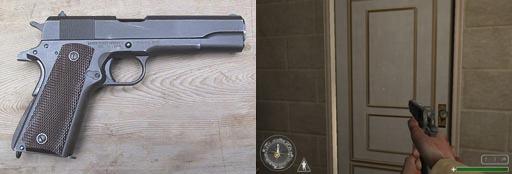 Colt 45 | Le colt 45, pistolet standard de l'armée Américaine, sert uniquement si on se trouve à court de munition ou avec un fusil. Première apparition dans l'armée: 1907