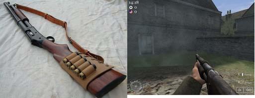Fusil à pompe M1897 | C'est un fusil à pompe classique, puissant de près et totalement inefficace de loin. Franchement je ne le trouve vraiment pas très interressante. Il fut créé en 1897. |  |